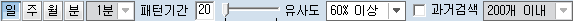 패턴기간[20] : 찾고자 하는 기간(캔버스 크기와 동일)을 수치로 입력하거나, 마우스로 선택하여 지정할 수 있습니다.