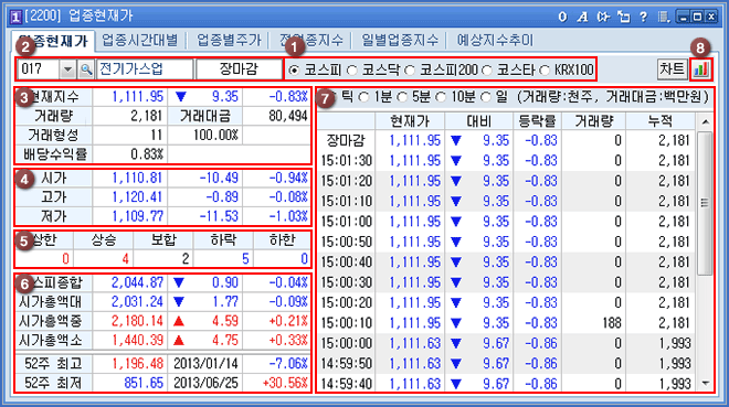 ¼±ÅÃÇÑ ½ÃÀåÀÇ ¡®ÇöÀçÁö¼ö, °Å·¡·®, °Å·¡Çü¼º¡¯ À» Á¶È¸ÇÒ ¼ö ÀÖ½À´Ï´Ù.