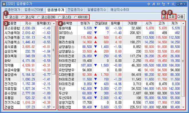 ¿¡¼ ¼±ÅÃÇÑ ¾÷Á¾À» ±¸¼ºÇÏ´Â Á¾¸ñ ¸®½ºÆ®¿Í ½Ã¼¼ÇöȲÀ» Á¶È¸ÇÒ ¼ö ÀÖ½À´Ï´Ù.