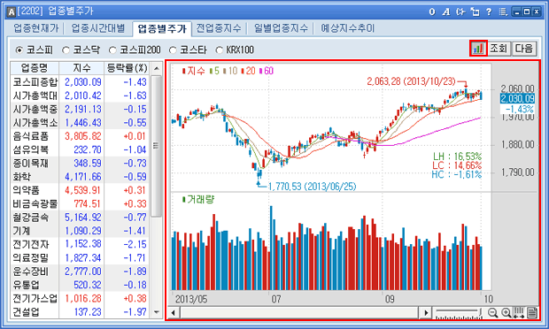 ¹öưÀ» Ŭ¸¯ÇÏ¸é ¼±ÅÃÇÑ ´ëÇ¥¾÷Á¾ÀÇ µ¥ÀÌÅ͸¦ Â÷Æ®·Î Á¶È¸ÇÒ ¼ö ÀÖ½À´Ï´Ù.