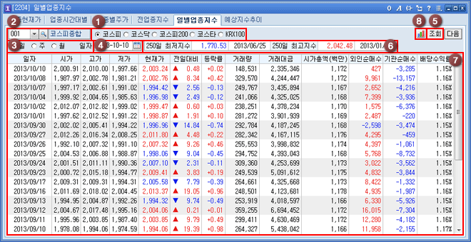 ¼±ÅÃÇÑ ¾÷Á¾ÀÇ '250ÀÏ ÃÖÀú/ÃÖ°íÁö¼ö, ³¯Â¥'¸¦ Á¶È¸ÇÒ ¼ö ÀÖ½À´Ï´Ù.