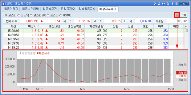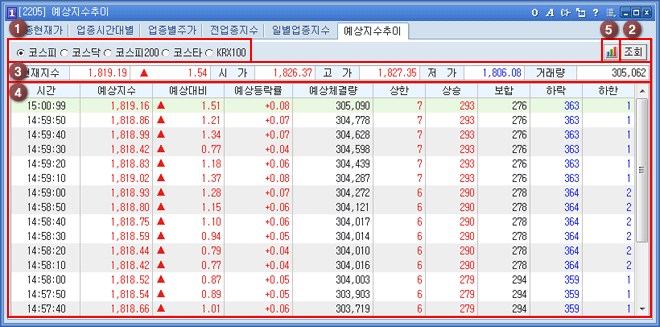 ¼±ÅÃÇÑ ½ÃÀåÀÇ ½Ç½Ã°£º° ¿¹»óÁö¼ö ÃßÀÌÇöȲÀ» Á¶È¸ÇÒ ¼ö Àִ ȸéÀÔ´Ï´Ù.