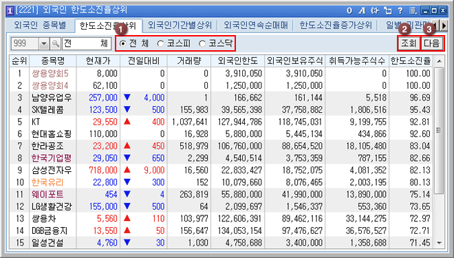 ¸¦ Ŭ¸¯ÇÏ½Ã¸é ¡°¿Ü±¹ÀÎ Çѵµ¼ÒÁøÀ²¡± ÀÌ ³ôÀº ¼ø¼´ë·Î Á¶È¸ µË´Ï´Ù.