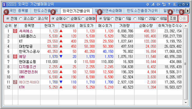 Á¶È¸ ÇÒ ±â°£À» ¡°´çÀÏ/ ÀüÀÏ/ 5ÀÏ/ 10ÀÏ/ 20ÀÏ/ 60ÀÏ¡± Áß¿¡¼ ¼±ÅÃÇÕ´Ï´Ù.