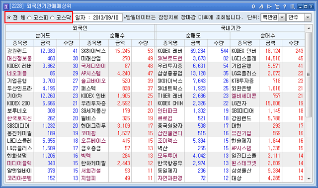 "Àüü/ÄÚ½ºÇÇ/ÄÚ½º´Ú" Áß¿¡¼ ½ÃÀåÀ» ¼±Åà ÇÏ½Ã¸é ´çÀÏÀÚ ¿Ü±¹ÀÎ ¹× ±â°üÀÇ ¼ø¸Å¼ö, ¸Åµµ »óÀ§ Á¾¸ñµéÀÌ ¼øÀ§´ë·Î Á¶È¸µË´Ï´Ù.