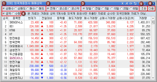 ¸¦ Ŭ¸¯ÇÏ½Ã¸é ¼±ÅÃÇϽŠÀÏÁ¤±â°£µ¿¾ÈÀÇ ¡°¿Ü±¹°èÁõ±Ç»ç ¸Å¸Å»óÀ§¡± Á¾¸ñµéÀÌ Á¶È¸ µË´Ï´Ù.