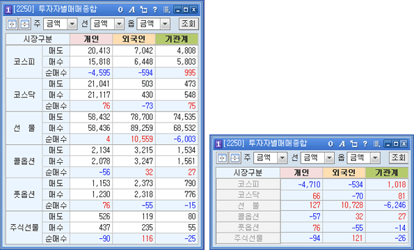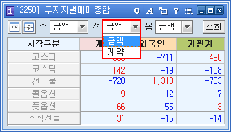 Á¶È¸´ÜÀ§´Â 'ÁÖ½Ä-±Ý¾×/ ¼ö·®', '¼±¹° ¹× ¿É¼Ç-±Ý¾×/ °è¾à' Áß ¼±ÅÃÀÌ °¡´ÉÇÕ´Ï´Ù.