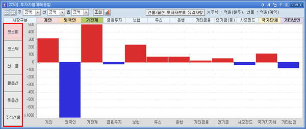 'ÄÚ½ºÇÇ/ÄÚ½º´Ú/¼±¹°/ÄݿɼÇ/Dz¿É¼Ç/½ºÅ¸¼±¹°' ÀÇ °¢ ¹öưÀ» Ŭ¸¯Çϸé ÇØ´ç ½ÃÀåÀÇ °¢ ÅõÀÚÀÚº° ¸Å¸Åµ¿ÇâÀ» Â÷Æ®·Î Á¶È¸°¡ °¡´ÉÇÕ´Ï´Ù.