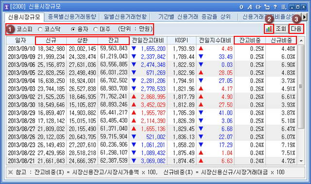 Á¶È¸Ç׸ñ Áß ¡°ÀܰíºñÁß¡±Àº ½Ã°¡ÃѾ׿¡¼ ½ÃÀå½Å¿ëÀÜ°í°¡ Â÷ÁöÇÏ´Â ºñÀ²À» ÀǹÌÇϸç, ¡°½Å±ÔºñÁß¡±Àº ½ÃÀåÀÇ °Å·¡´ë±Ý¿¡¼ ½Å±Ô½Å¿ë°Å·¡°¡ Â÷ÁöÇÏ´Â ºñÀ²À» ÀǹÌÇÕ´Ï´Ù.