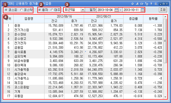 '융자,대주' 중 조회를 원하시는 구분을 선택합니다.