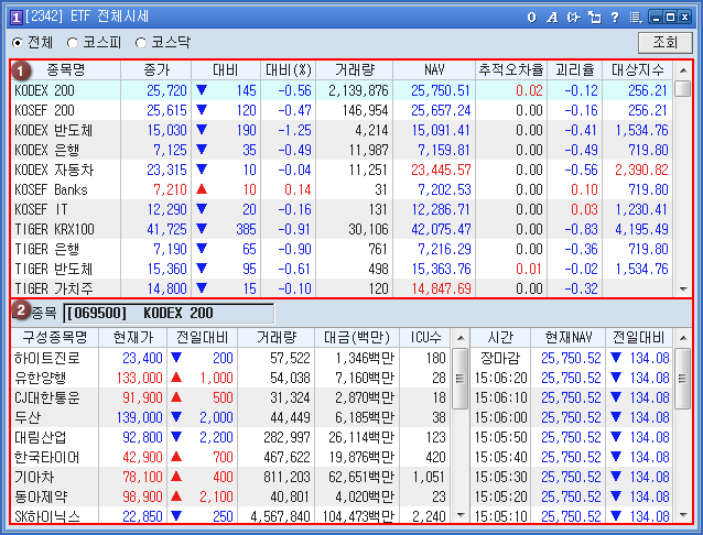 ETF½Ã¼¼ ¿µ¿ªÇöÀç °Å·¡ °¡´ÉÇÑ ETFÀÇ ½Ã¼¼ ¹× NAV, ÃßÀû¿ÀÂ÷À², ±«¸®À², ´ë»óÁö¼ö ÇöȲÀ» Á¶È¸ÇÒ ¼ö ÀÖ½À´Ï´Ù.