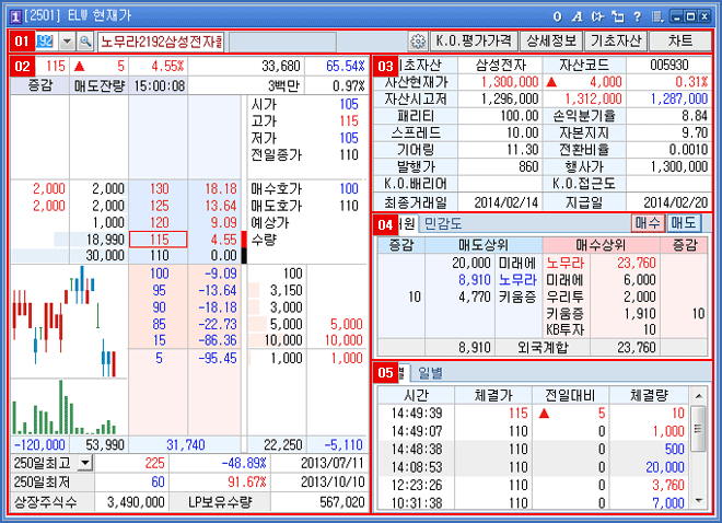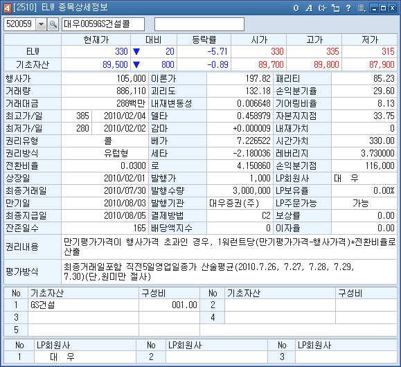 Á¶È¸ ELWÀÇ ¡°±âÃÊÀÚ»ê/ ÀÚ»êÇöÀç°¡/ ÀÚ»ê½Ã°íÀú(°¡)¡±µîÀÇ ±âÃÊÀÚ»ê ½Ã¼¼Á¤º¸¿Í ¡°ÆÐ¸®Æ¼/ ½ºÇÁ·¹µå/ ±â¾î¸µ/ ¹ßÇà°¡/ ¼ÕÀͺбâÀ¯/ ÀüȯºñÀ²/ Çà»ç°¡/ ÃÖÁ¾°Å·¡ÀÏ/ Áö±ÞÀÏ¡± µîÀÇ ELWÁ¤º¸¸¦ Á¶È¸ÇÒ ¼ö ÀÖ½À´Ï´Ù.