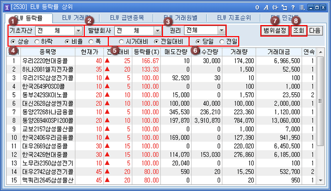 Á¶È¸ Á¶°ÇÀ» ¡°»ó½Â/Ç϶ô/ºñÀ²/Æø¡± Áß¿¡¼ ¼±ÅÃÇÕ´Ï´Ù.