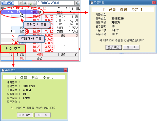È£°¡Ã¢¿¡ ¹Ìü°á ¾ÆÀÌÄÜÀ» Ãë¼ÒÁÖ¹® ¿µ¿ªÀ¸·Î µå·¡±× ÇÏ¸é ¹Ìü°á Á¾¸ñ¿¡ ´ëÇÑ Ãë¼Ò ÁÖ¹®ÀÌ ½ÇÇà µÇ¸ç, ´Ù¸¥È£°¡·Î µå·¡±×Çϸé Á¤Á¤ ÁÖ¹®ÀÌ ½ÇÇàµË´Ï´Ù.