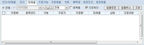 ¹Ìü°á: Àå Áß ½ÇÇàÇÑ ¸Å¼ö, ¸ÅµµÁÖ¹®ÀÇ ÁÖ¹®·®¿¡¼ Á¶È¸½ÃÁ¡±îÁö ü°áµÈ ¼ö·®À» Á¦¿ÜÇÑ ¹Ìü°á ¼ö·®À» Á¶È¸ÇÒ ¼ö Àִ ȸéÀÔ´Ï´Ù.