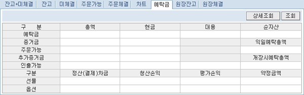 ¿¹Å¹±Ý: °í°´ÀÇ ¼±¹°/¿É¼Ç °èÁÂÀÇ ¿¹Å¹±Ý ¹× Áõ°Å±Ý ÇöȲÀ» Á¶È¸ÇÒ ¼ö Àִ ȸéÀÔ´Ï´Ù.