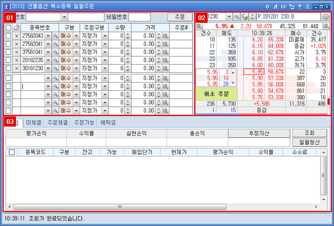 버튼을 클릭하면 선택한 종목의 일괄주문이 실행됩니다.