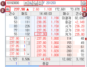 호가등락율 보기 : 호가창의 등락율 현황이 표시됩니다.