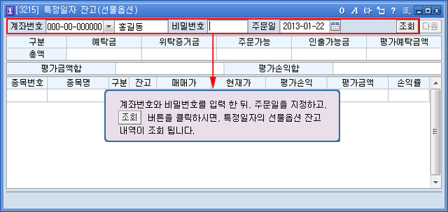 ƯÁ¤ÀÏÀÚÀÇ ¼±¹°¿É¼Ç ÀÜ°í¸¦ Á¶È¸ ÇÒ ¼ö Àִ ȸéÀÔ´Ï´Ù.