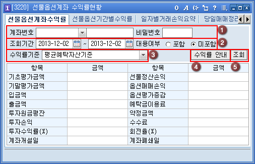 Á¶È¸ÇÏ½Ç ¼öÀÍ·ü ±âÁØÀ» ¡°Æò±Õ¿¹Å¹ÀÚ»ê±âÁØ¡±, ¡°ÅõÀÔÀÚ»ê±âÁØ(±âÃÊÀÚ»ê+ÀÔÃâ±Ý¾×)¡±, ¶Ç´Â ¡°ÅõÀÔÀÚ»ê±âÁØ(±âÃÊÀÚ»ê+ÀԱݾ×) Áß ¼±ÅÃÇϽøé, ÇØ´ç ±âÁØ¿¡ µû¶ó ¼öÀÍ·üÀÌ °è»êµË´Ï´Ù.