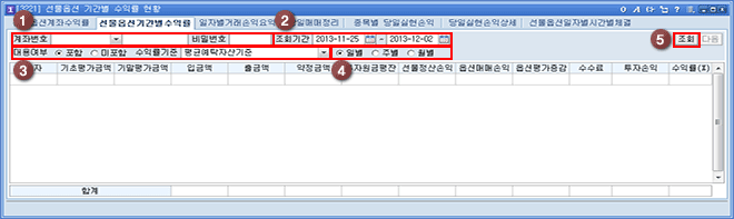 ¹öưÀ» Ŭ¸¯ÇϽøé '±âÃÊÆò°¡±Ý¾×', '±â¸»Æò°¡±Ý¾×', '¼ö¼ö·á', '¼öÀÍ·ü' µî ¼±¹°¿É¼Ç ±â°£º° »ó¼¼ ¼öÀÍ·ü ÇöȲÀÌ Á¶È¸ µË´Ï´Ù.