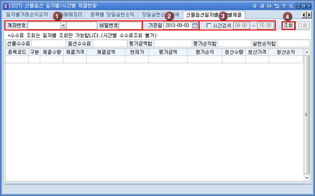 Á¾¸ñÄÚµå ¹× Ã¼°á±Ý¾×, ÇöÀç°¡, Æò°¡¼ÕÀÍ, û»ê ¼ÕÀÍ µîÀ» »ó¼¼È÷ Á¶È¸ÇÒ ¼ö ÀÕÀ¸¸ç, Á÷Á¢ Á¶È¸±â°£ ¹× ½Ã°£À» ÁöÁ¤ÇÏ¿© Á¶È¸±â°£³»ÀÇ »ó¼¼ ³»¿ëÀ» Á¶È¸ÇÒ ¼ö ÀÖ½À´Ï´Ù.