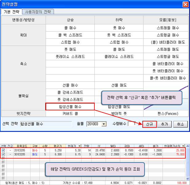 ¡°Àü·«¡± Ç׸ñÀº ´Ù¾çÇÑ ¼±¹°¿É¼Ç ¸Å¸Å Àü·«À» ¼±ÅÃÇÏ½Ç ¼ö ÀÖ´Â Ç׸ñÀÔ´Ï´Ù. ¡°±âº»Àü·«¡± â¿¡¼ °¢ Àü·«À» Ŭ¸¯ÇϽðí, ¡°½Å±Ô¡± ȤÀº ¡°Ãß°¡¡±, ¹öưÀ» Ŭ¸¯ÇÏ½Ã¸é ¿µ¿ª¿¡ ÇØ´ç Àü·«ÀÌ µî·Ï, Á¶È¸ µË´Ï´Ù.