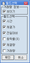 ¹öưÀ» Ŭ¸¯ÇÏ½Ã¸é ¡°Çʵ弱Åá± ȸéÀÌ ÆË¾÷µÇ¾î, ¡°°Å·¡·® Á¤º¸¡± ¹× ¡°½Ã°£/ü°á°¡/ÀüÀÏ´ëºñ¡± µîÀÇ ¡°Çʵ弱Åá± ¿É¼ÇÀ» ÁöÁ¤ÇÏ½Ç ¼ö ÀÖ½À´Ï´Ù