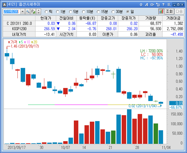 ¹öưÀ» Ŭ¸¯ÇÏ½Ã¸é ¿É¼Ç Á¾¸ñÀÇ ½Ã¼¼ÃßÀ̸¦ Â÷Æ®·Î Á¶È¸ÇÏ½Ç ¼ö ÀÖ½À´Ï´Ù.