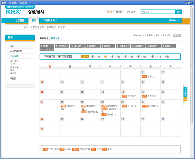 KRX(Çѱ¹°Å·¡¼Ò)¿¡¼ Á¦°øÇÏ´Â ¼±¹°½ÃÀåÀÇ Áõ½ÃÀÏÁ¤À» Á¶È¸ÇÒ ¼ö Àִ ȸéÀÔ´Ï´Ù.