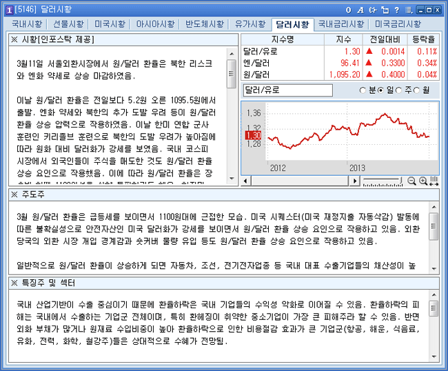 인포스탁에서 제공하는 달러시황, 주도주, 특징주 및 섹터, 달러/유로 지수, 지수차트 등 상세내용을 확인할 수 있습니다.
