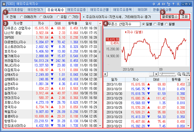 ¿¡¼ ¼±ÅÃÇÑ Áö¼öÀÇ 'ºÐº°, ÀϺ°, ÁÖº°, ¿ùº°' Áö¼öÇöȲÀ» Â÷Æ®¿Í ¼öÄ¡·Î Á¶È¸ÇÒ ¼ö ÀÖÀ¸¸ç, °¢±¹ÀÇ ½Ã°£´ëº° Áö¼ö,´ëºñ,µî¶ôÀ²À» Ç¥½ÃÇÕ´Ï´Ù..