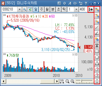 ¹öưÀ» Ŭ¸¯ÇϽøé Â÷Æ®»ó¿¡ Ãß¼¼¼±, µµÇü µîÀ» ±×¸± ¼ö ÀÖ´Â ÅøÀÌ ³ªÅ¸³³´Ï´Ù.
