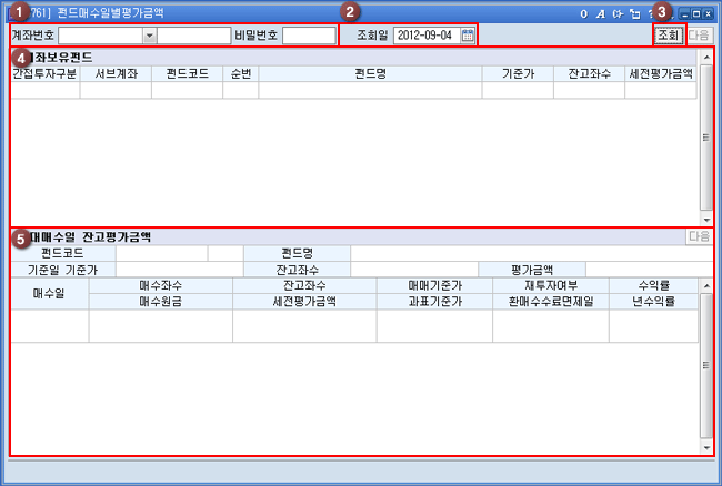 버튼을 클릭하여 선택한 계좌의 펀드 일별 평가금액을 확인합니다.