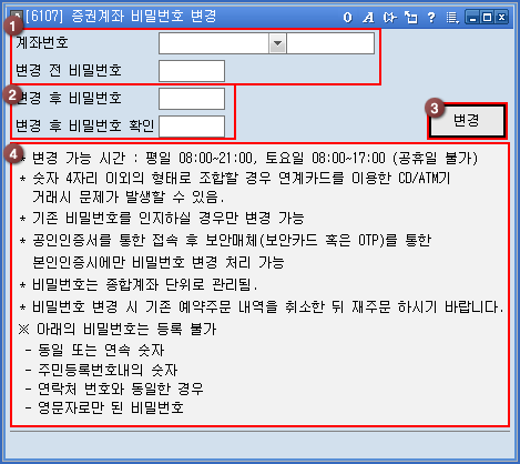 버튼을 클릭하여 계좌비밀번호를 변경합니다.