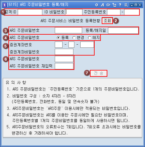 ¹öưÀ» Ŭ¸¯Çϸé ARS ÁÖ¹® ¼ºñ½º ºñ¹Ð¹øÈ£ µî·Ï ÇöȲÀ» Á¶È¸ÇÒ ¼ö ÀÖ½À´Ï´Ù.