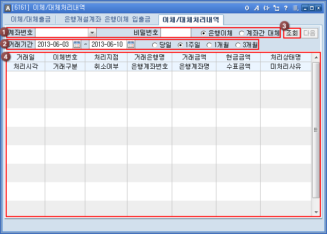 °èÁ¹øÈ£¸¦ ¼±ÅÃÇϽðí, °èÁÂÀÇ ºñ¹Ð¹øÈ£¸¦ ÀÔ·ÂÇÑ ÈÄ ÀºÇàÀÌü ¹× °èÁ°£ ´ëü¸¦ ¼±ÅÃÇÕ´Ï´Ù.