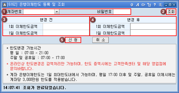 'º¯°æÀ» ¿øÇÏ´Â 1ÀÏ/1ȸ ÀÌüÇѵµ±Ý¾×À» ÀÔ·ÂÇÕ´Ï´Ù.