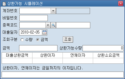 ¹öưÀ» Ŭ¸¯Çϸé '»óȯ°¡´É ½Ã¹Ä·¹À̼Ç' âÀÌ ÆË¾÷ µÇ¸ç, Çö±Ý»óȯ °¡´É ³»¿ªÀ» ¹Ì¸® °è»êÇØ º¼ ¼ö ÀÖ½À´Ï´Ù.