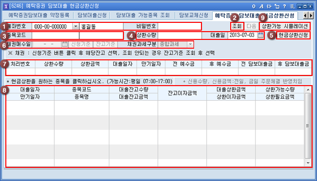 ¡®´ëÃâÀÏÀÚ, ¸¸±âÀÏÀÚ, ´ëÃâÀܰí¼ö·®, ÀܰíÀÌÀڱݾ×, ¡¦¡¯ µîÀÇ »ó¼¼ÇÑ »óȯ ³»¿ªÀ» Á¶È¸ÇÒ ¼ö ÀÖ½À´Ï´Ù.