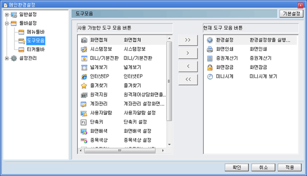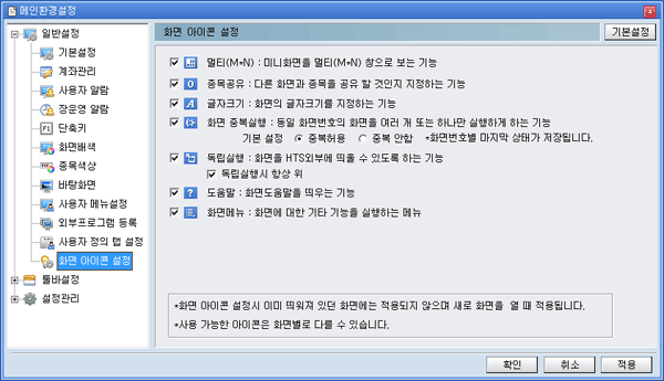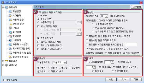 HTS ½ÇÇà ½Ã ½ÃÀÛȸé, ±âº»¼³Á¤, ±Û²Ã¼³Á¤, º¸¾È¼³Á¤ µîÀÇ ±âº» ¼³Á¤À» ÇÒ ¼ö ÀÖ½À´Ï´Ù.