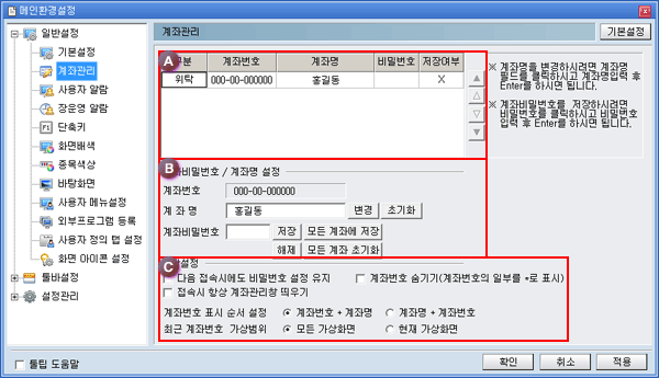 »ç¿ëÀÚ °èÁÂÀÇ °èÁºñ¹Ð¹øÈ£ ÀúÀå°ú HTS Á¢¼Ó ½Ã ºñ¹Ð¹øÈ£ ¼³Á¤ À¯Áö ¿©ºÎ, °èÁ¹øÈ£ ¼û±â±â/Ç¥½Ã ¼ø¼ º¯°æ µîÀ» ¼³Á¤ÇÒ ¼ö ÀÖ½À´Ï´Ù.