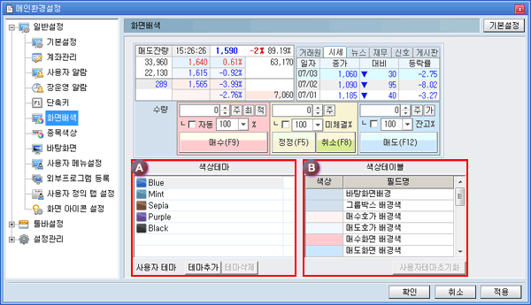 HTS ȸéÀ» ±¸¼ºÇÏ´Â ¼¼ºÎ¿ä¼ÒµéÀÇ »ö»óÀ» °¢°¢ ¼³Á¤ÇÒ ¼ö ÀÖ½À´Ï´Ù.
