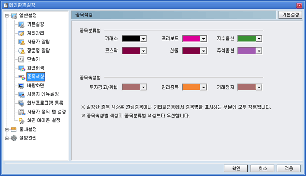 Á¾¸ñÀÇ ¼Ò¼Ó ½ÃÀ庰, Á¾¸ñÀÇ ¼Ó¼ºº°·Î HTS¿¡ Ç¥½ÃµÇ´Â Á¾¸ñ¸íÀÇ »ö»óÀ» ¼³Á¤ÇÒ ¼ö ÀÖ½À´Ï´Ù.
