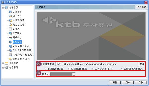HTS ¹ÙÅÁȸéÀÇ ¹è°æ»ö»ó°ú ¹ÙÅÁȸ鿡 Àû¿ëÇÒ À̹ÌÁö ¹× À§Ä¡¸¦ ¼³Á¤ÇÒ ¼ö ÀÖ½À´Ï´Ù.