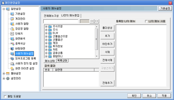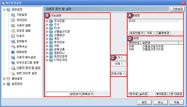 »ç¿ëÀÚ ÁöÁ¤ : HTS ȸéµéÁß »ç¿ëÀÚ°¡ ¿øÇϴ ȸéÀ» ã¾Æ HTS Á¢¼Ó½Ã ½ÃÀÛȸéÀ¸·Î ¼³Á¤ÇÒ ¼ö ÀÖ½À´Ï´Ù.