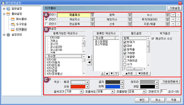 »ç¿ëÀÚ°¡ ¼±ÅÃÇÑ ±¹³»Áö¼ö/ ÇØ¿ÜÁö¼ö/ µî¶ô/ °ü½ÉÁ¾¸ñ/ ´º½º/ ÅõÀÚÀÚµ¥ÀÌÅÍ/ ½ÅÈ£/ ÁÖ¹®/ ü°á µîÀÇ ³»¿ëÀ» ½Ç½Ã°£À¸·Î È®ÀÎÇÒ ¼ö ÀÖ´Â Æ¼Ä¿Åø¹ÙÀÇ ¼³Á¤À» º¯°æÇÒ ¼ö ÀÖ½À´Ï´Ù.