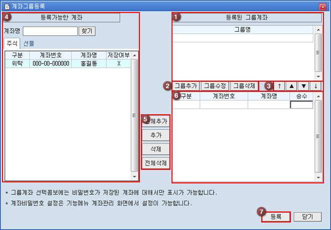 º¸À¯ÇÏ°í °è½Å ÁÖ½Ä/¼±¹° °èÁ ¸®½ºÆ®À̸ç, ±×·ì°èÁ¿¡ µî·ÏÇÒ °èÁ¹øÈ£¸¦ ¼±ÅÃÇÕ´Ï´Ù.