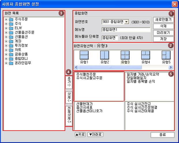 °¢ ¹öưÀ» Ŭ¸¯Çϸé Á¾ÇÕȸéÀÇ »ý¼º ¹× »èÁ¦¿Í ¼³Á¤ÇÑ Á¾ÇÕȸéÀ» ¹Ì¸®º¸±â ÇÒ¼ö ÀÖ½À´Ï´Ù.
