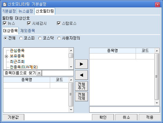 Àû¿ëÇÒ ½ÅÈ£ÀÇ ¼±Åðú Àû¿ëÁ¾¸ñ ¹× Á¦¿ÜÁ¾¸ñÀ» ¼³Á¤ÇÒ ¼ö ÀÖ½À´Ï´Ù.